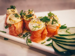 6 unidades (Lâminas de salmão recheada com cream chesse e cebolinha)
