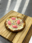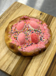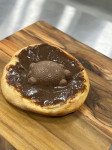 6 mini churros, 1 potinho de cheddar cremoso e um potinho de farofa de bacon